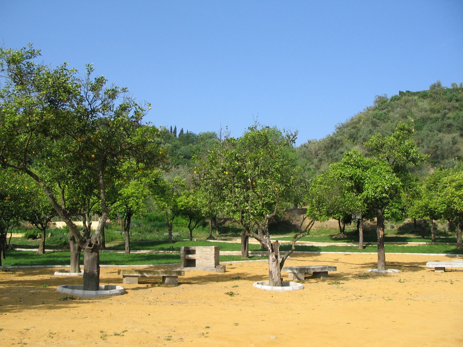 También se ha conservado y recuperado la estructura de huerta en los terrenos comprendido entre la noria y los restos del cortijo. Se han sustituido los naranjos existentes por especies autóctonas de la zona con alto interés paisajístico.